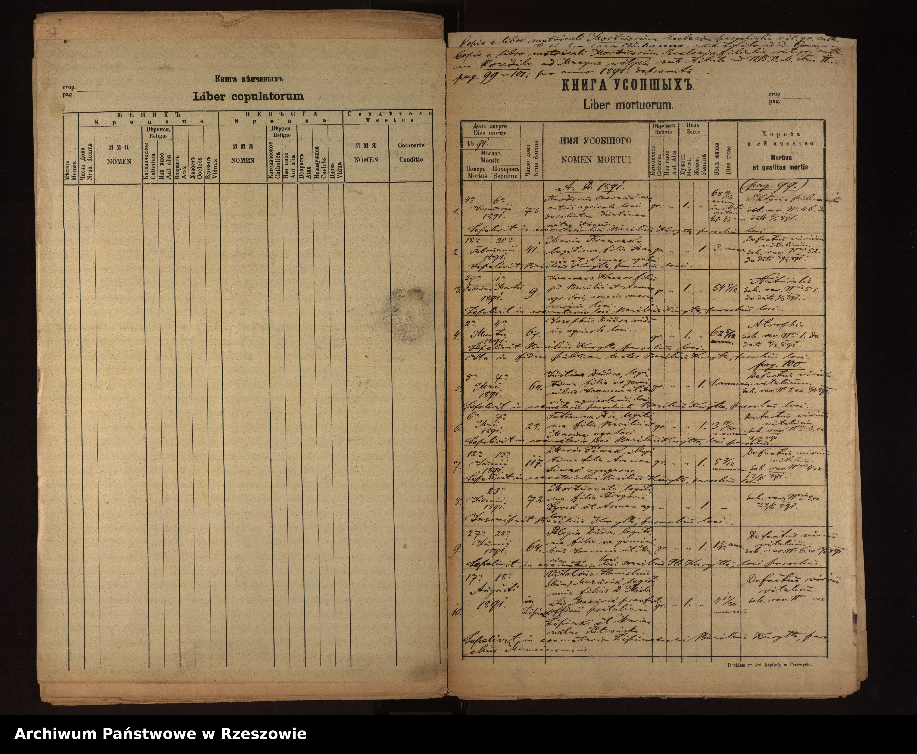| 10 | 1891.08.17 | Rozdziele | Vitoldus Mazurik | Catholic | male | 4 12/30 | Defectus virium vitalium | Michael Mazurik | Maria Patroniska |