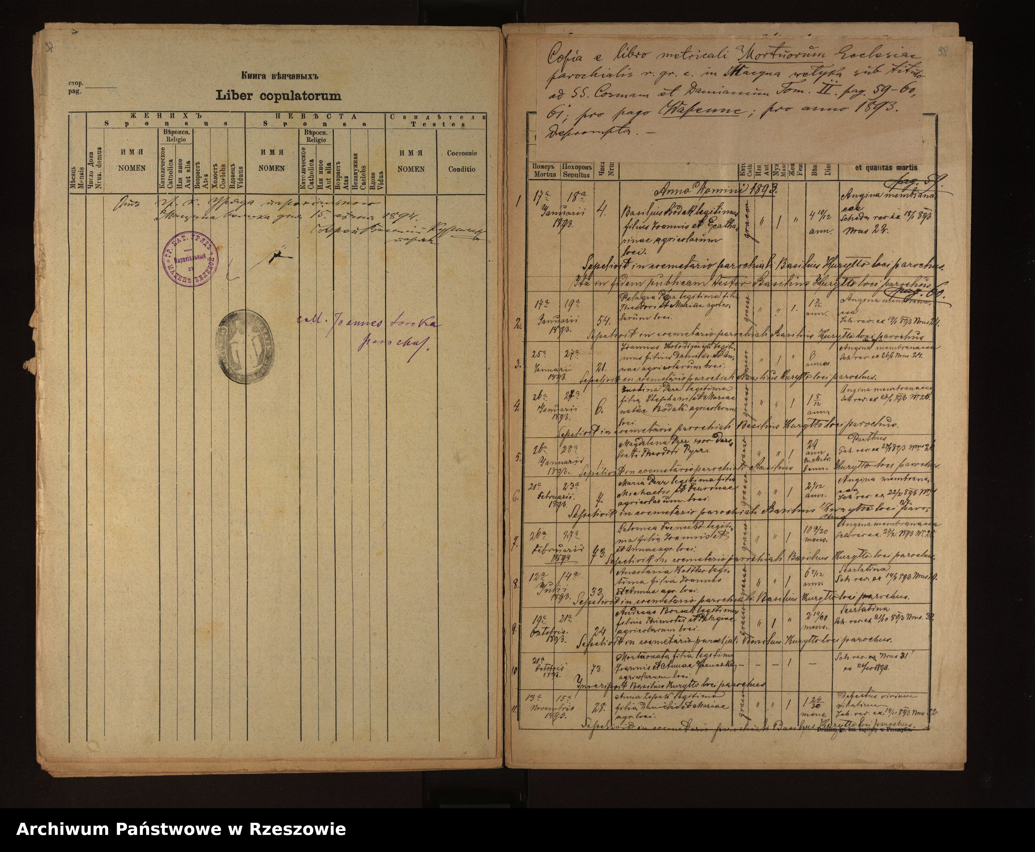 Metrical Records for the Greek Catholic Parish of Męcina Wielka, 1890-1897