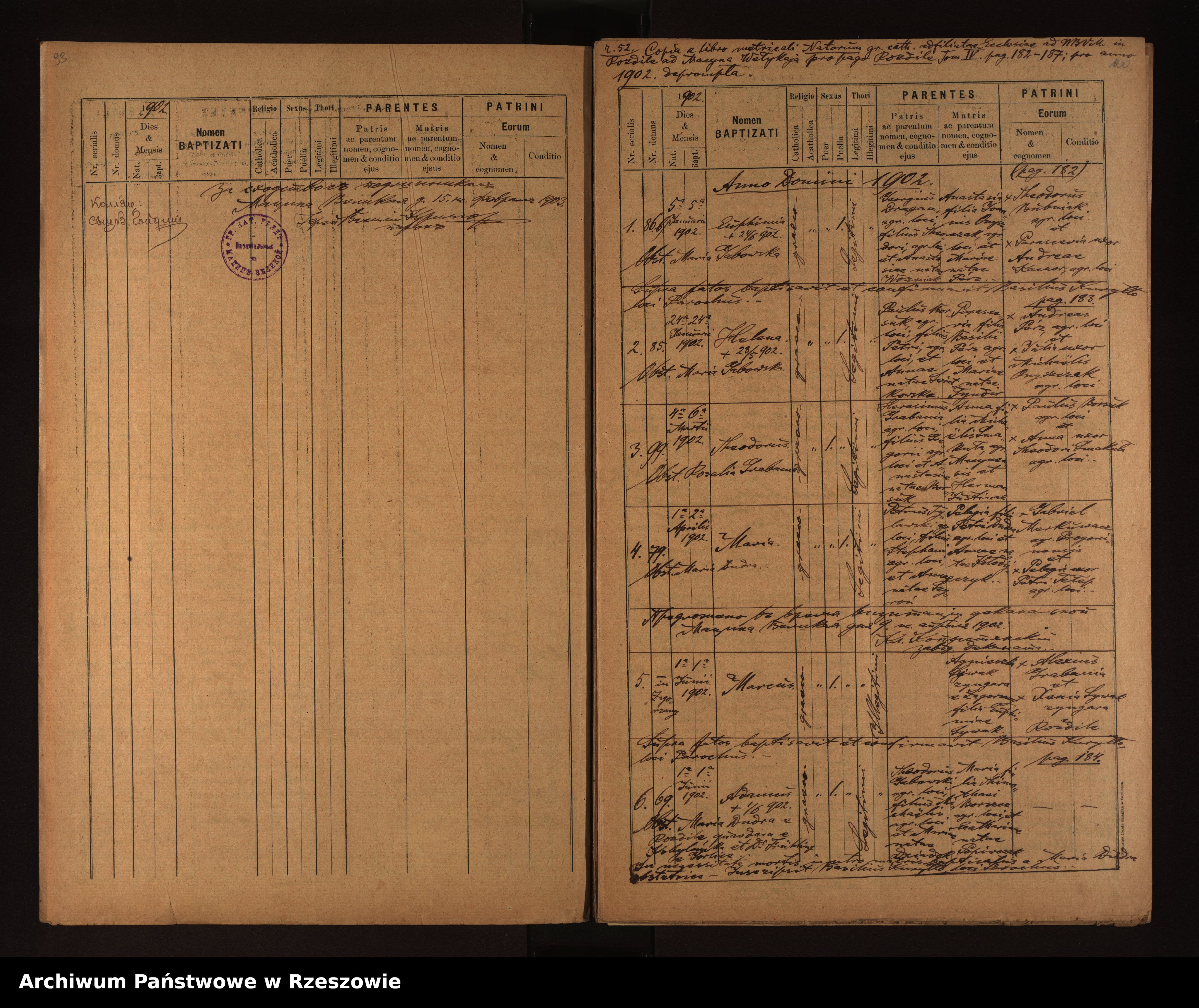 | 5 | 1902.06.01 | Rozdziele | Marcus Sywak | Catholic | male | Illegitimate | ? ? | Agnieszka Sywak | ||