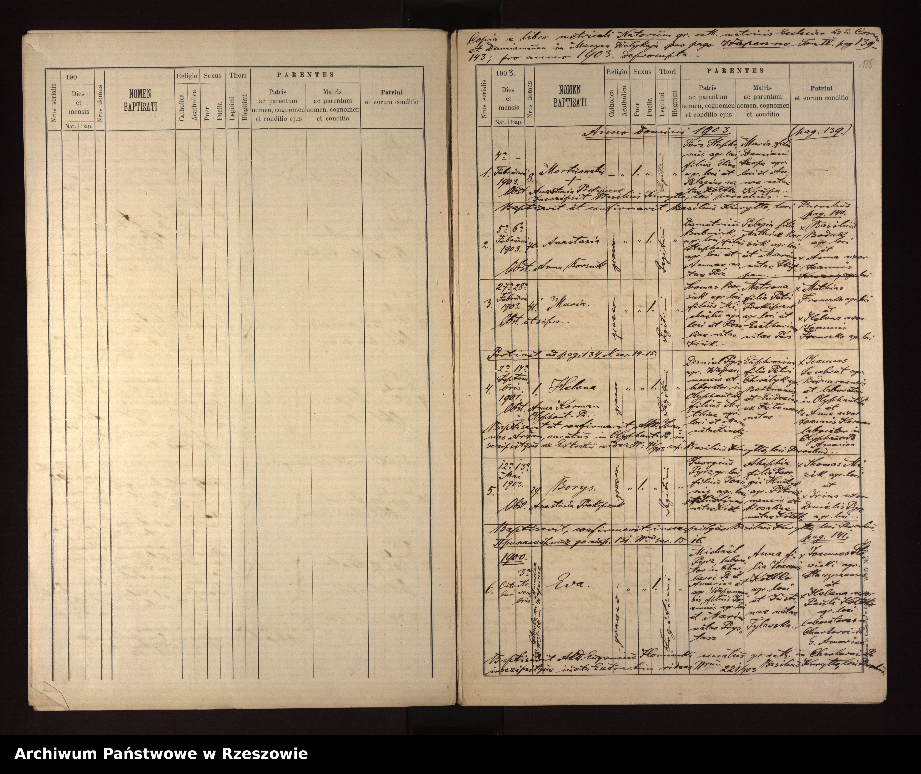 | 4 | 1903.09.02 | Wapienne | 1 | Helena Pyrz | Catholic | female | Daniel Pyrz | Euphrosina Chwałyk | ||