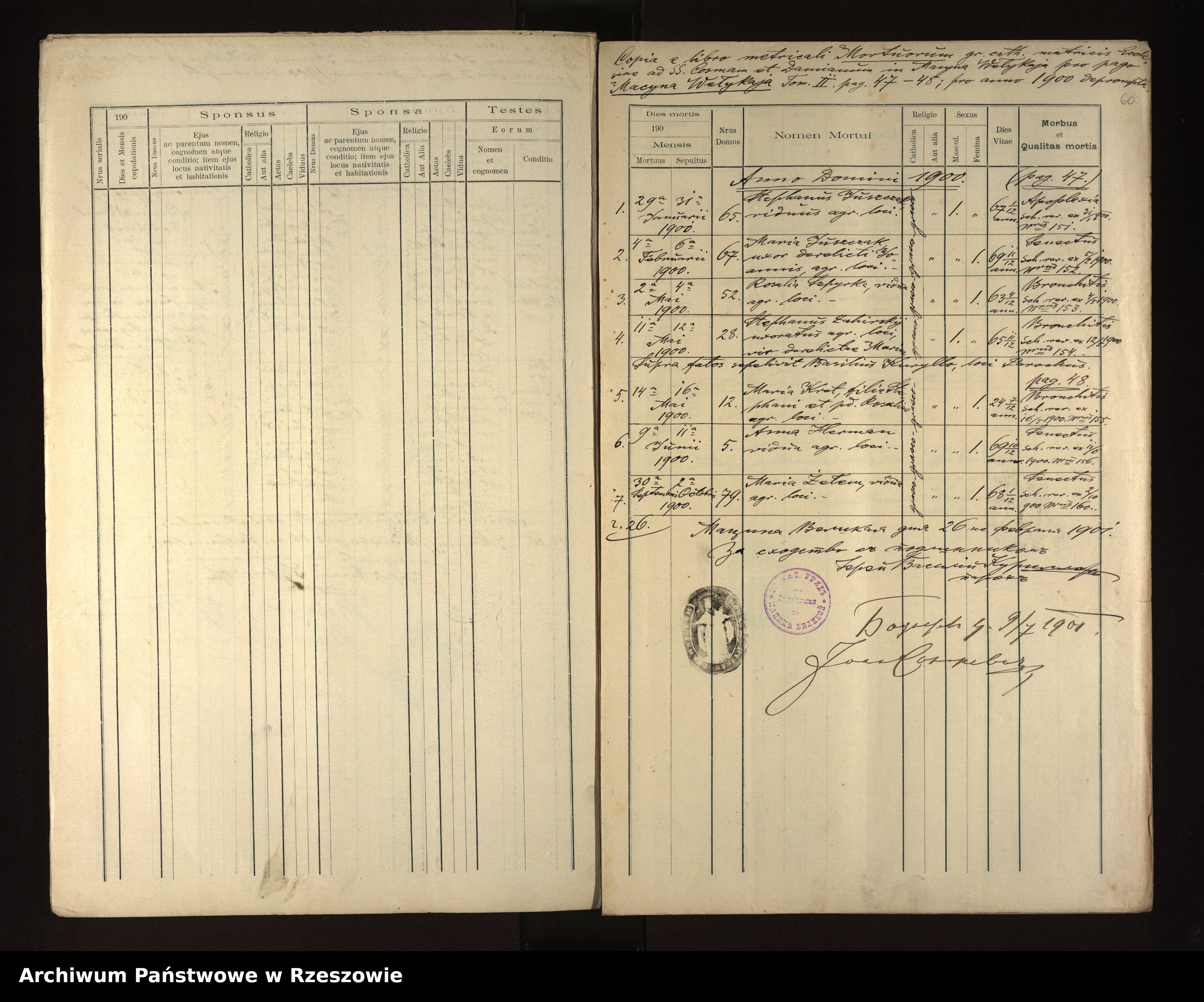 Metrical Records for the Greek Catholic Parish of Męcina Wielka, 1898-1906