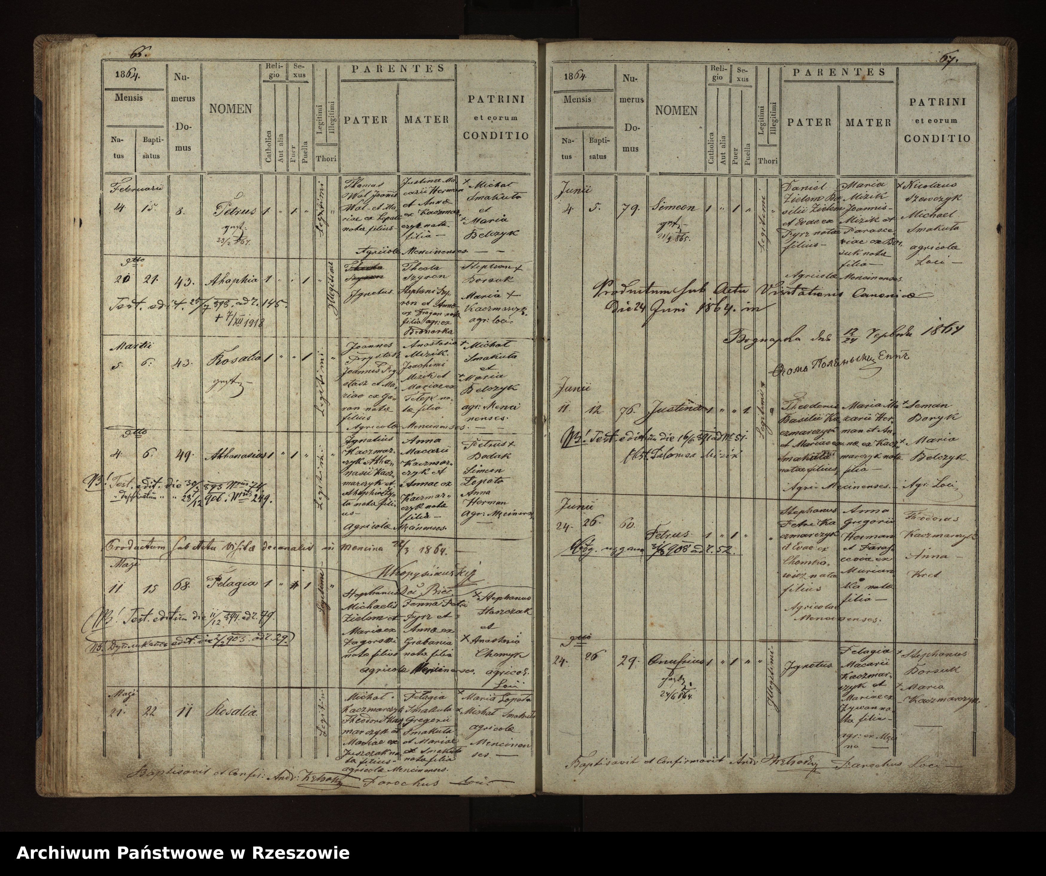 | 10 | 1864.06.24 | Męcina Wielka | 29 | Onuphrius Kaczmarczyk | Catholic | male | Illegitimate | ? ? | Pelagia Kaczmarczyk | Marked “illegitimate” in the column for “legitimate” |