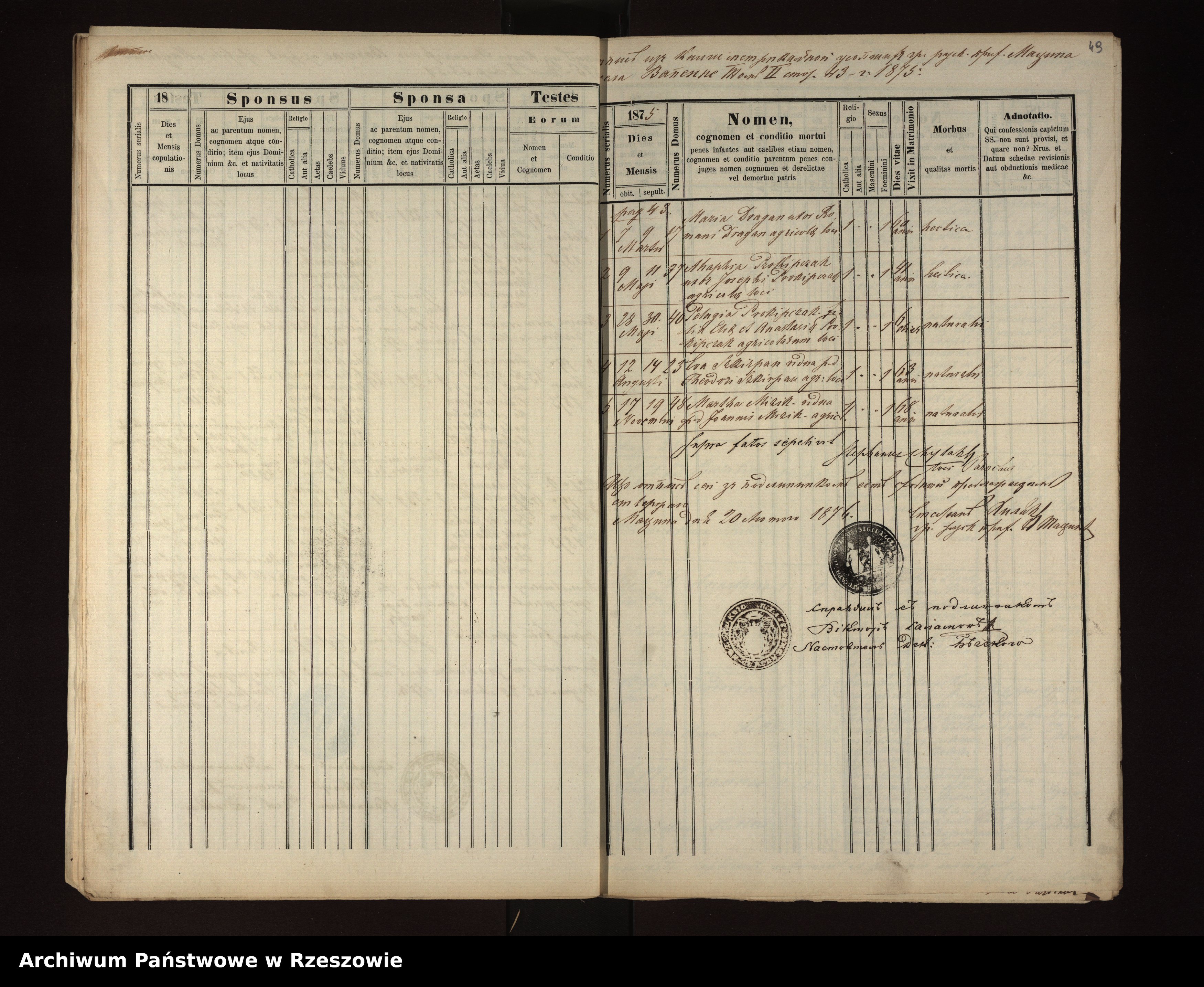 Metrical Records for the Greek Catholic Parish of Męcina Wielka, 1873-1879