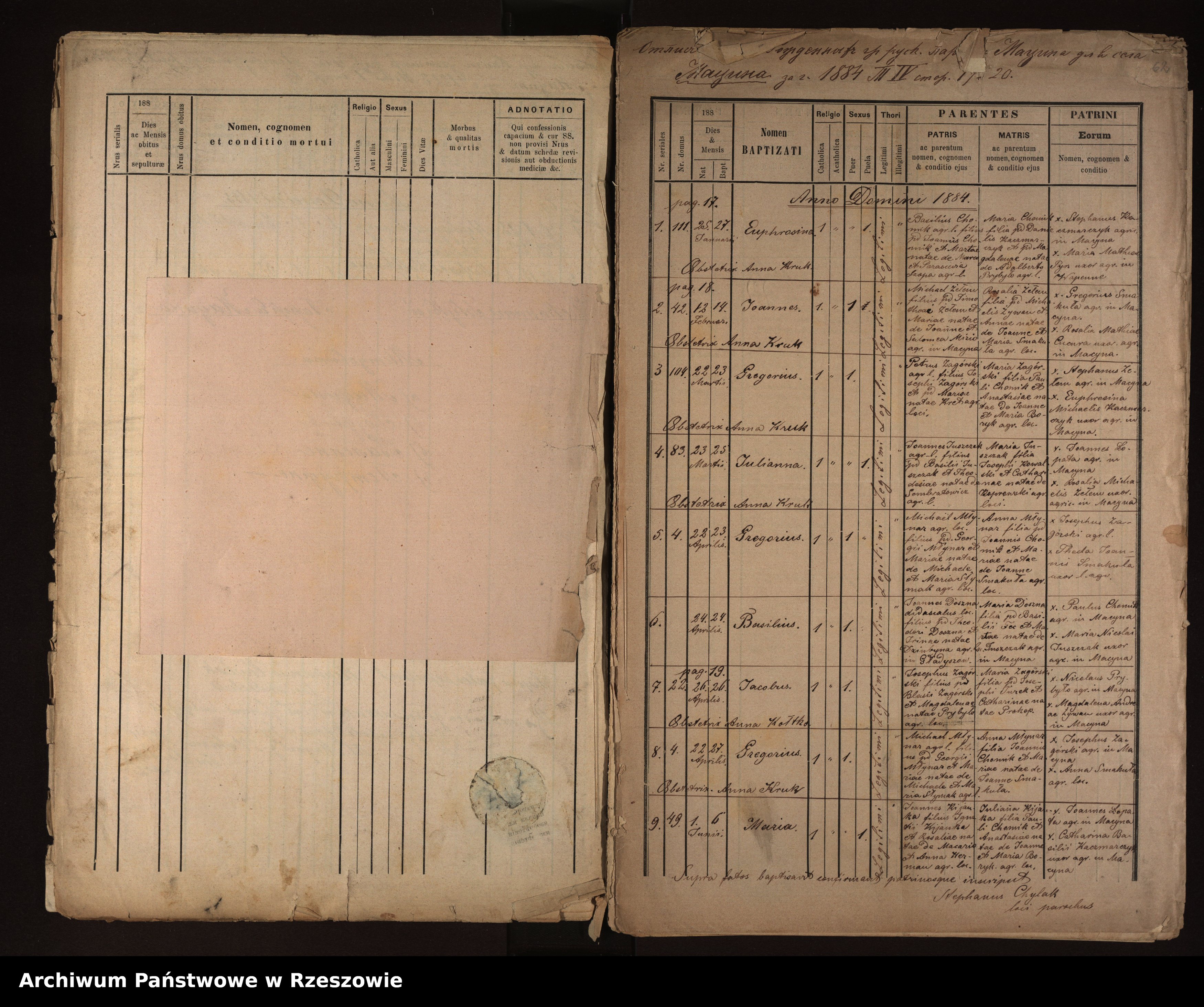 | 6 | 1884.04.24 | Męcina Wielka | Basilius ? | Catholic | male | Joannes Doszna | Maria Fec | |||