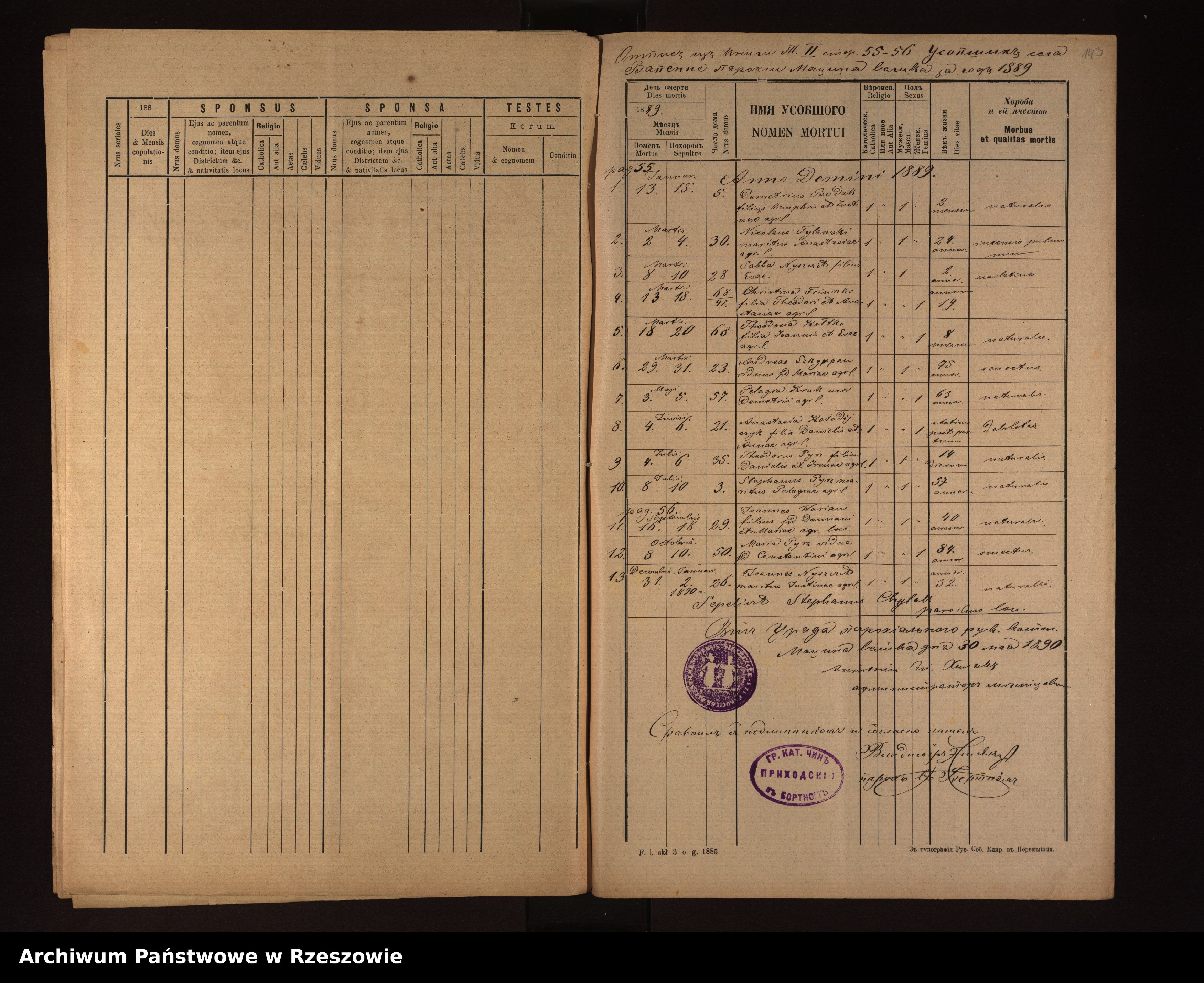 Metrical Records for the Greek Catholic Parish of Męcina Wielka, 1881-1889