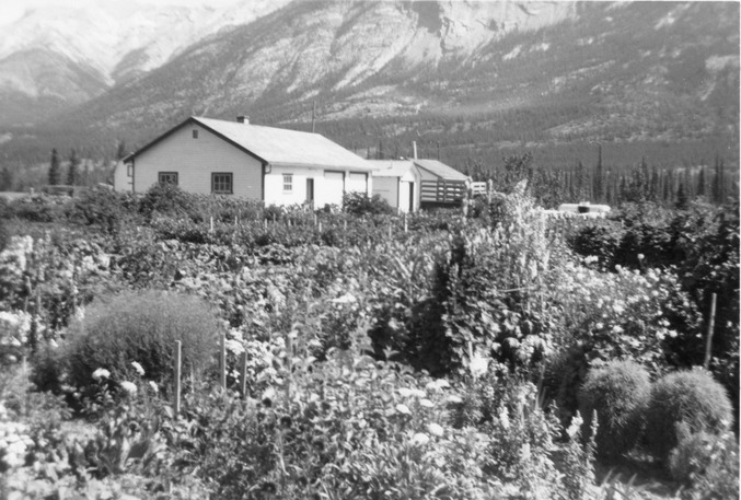 As time went on I improved the station grounds so that I had beautiful grounds and garden. In that lovely climate I could grow things I cannot grow now at Rocky Mountain House. Although the altitude was four thousand five hundred feet and deep on the mountains, it was frost-free from mid-May to mid-October; very dry of course, and we had to keep water sprinklers going every day. Hunters used to be amazed to come out there in the fall and see flowers blooming while outside all would be dead.