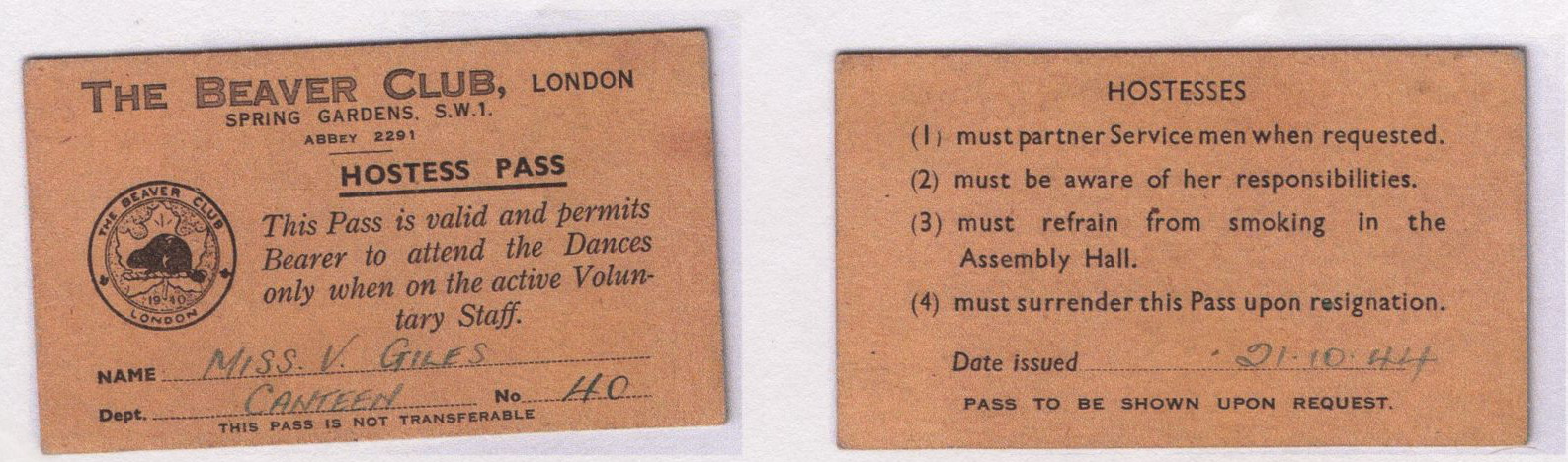 I served with the Auxiliary Service Corps for a time[7] , sometimes at the Beaver Club as cloakroom attendant and on fire watch during the airraids, meantime living in a flat at Chelsea. I was mostly on afternoon or night duty and often had my evening meal about eleven p.m. after finishing for the night.