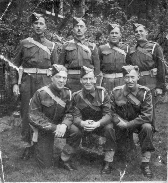 After several weeks of the run-around, I went AWOL. It was Christmas week[5] and all leave was cancelled for the troops. I simply donned my M.P. armband and headed for Paisley, Scotland, where three of my brothers were already on leave. After a week I decided to return to face the music, and in the afternoon of the day I intended leaving at night, walked downtown and a vehicle pulled alongside with the command, "Get in, we're looking for you." It was the sergeant from the Glasgow provost detachment. I was escorted back to London in handcuffs. In the orderly room at headquarters I was told to put on a tunic with no rank and no flashes denoting my unit. I refused, and demanded to see the duty officer, who couldn't be contacted. Eventually in late afternoon the duty officer arrived, gave me quite a lecture, and "Now put that tunic on!" (They wanted to put me in the bullpen with all the other prisoners.) "No sir," I said, "I refuse. Only two things will take my rank and flashes off, a court martial or a transfer. I have tried to get a transfer." They had to put me in a room by myself with one of my buddies to guard me for ten days, waiting for a hearing. As all prisoners had to have daily exercise, whoever was guarding would take me out in the afternoon and we would go to a picture show or other entertainment. Next I was hauled up before the Colonel who took a dim view of me, a corporal in the Provost Corps to do such a thing! "I feel there must be some reason for this," he said. "Are you going to tell me?" "There's no use talking about it; I've been AWOL, nothing will change that."